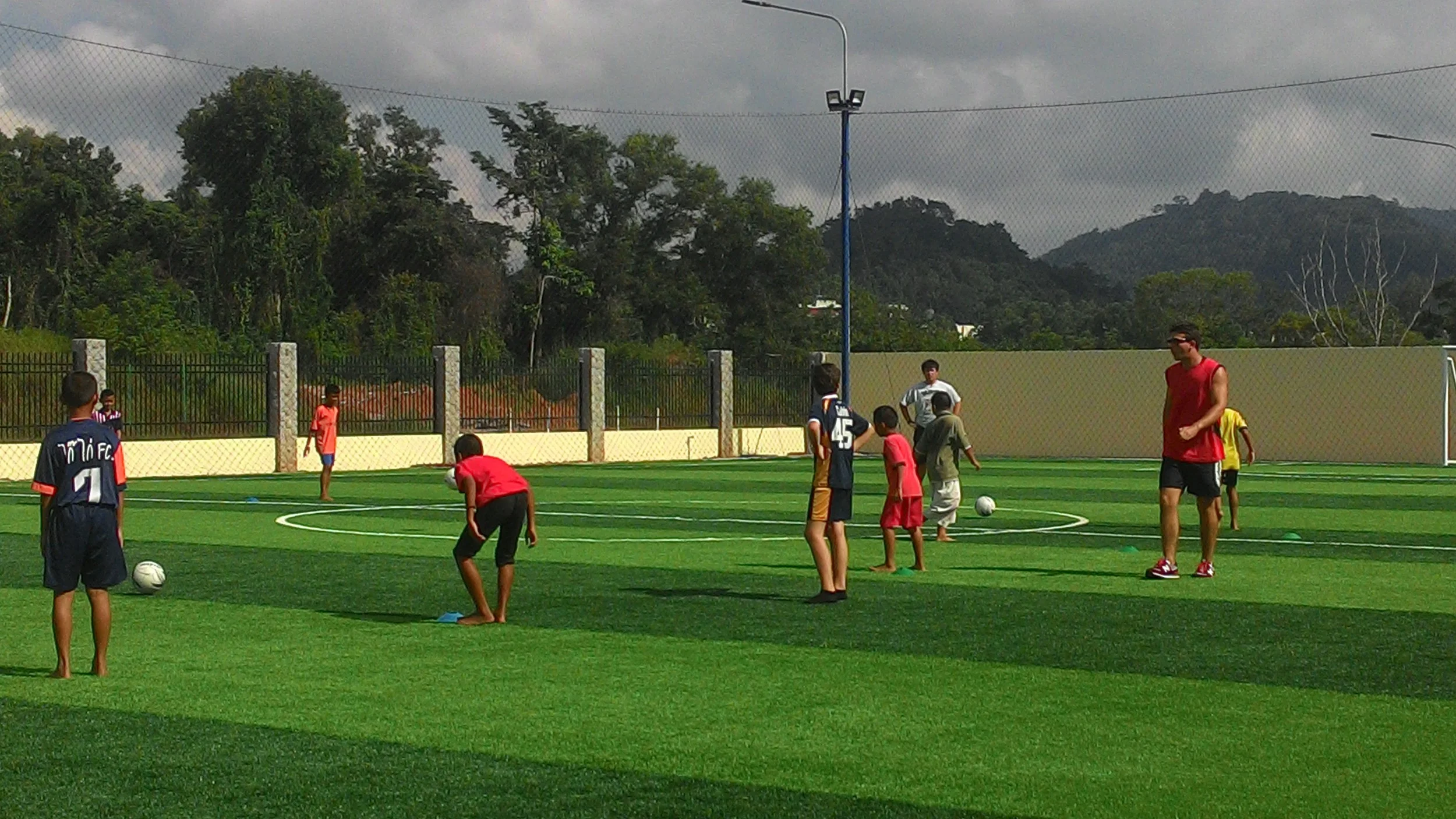 Och lördagen den 17 oktober var det alltså dags för vårt besök. Oj vad de hade ansträngt sig för att ge oss en fantastisk dag och oj vad fantastisk den blev. På plats fanns både elever, lärare och föräldrar - vi fick leka i skolans bollhav, några av de äldre eleverna hade fotbollsskola för de som ville, andra äldre elever hade konstskola med våra barn, vi fick utföra alla möjliga sporter i deras härliga inomhushall, bada i deras härliga pool. Efter lekar och sport bjöds vi på jättegod lunch som föräldrar till eleverna hade lagat till oss. Dagen avslutades med att vi fick göra våra egna tvålar. Det var ett glatt, mätt och tacksamt gäng som vände hemmåt på eftermiddagen.